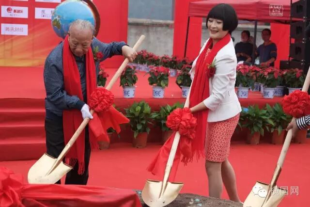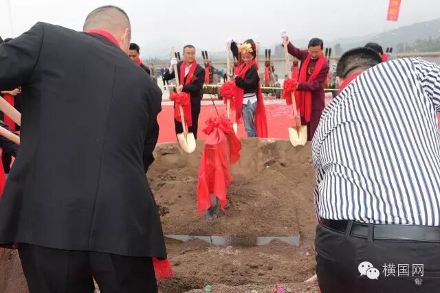 奠基石挂红色绸花,金铁锹系红绸缎,领导嘉宾戴上白手套,挥锹奠基!