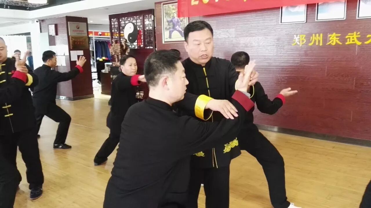 此次培训班的主要课程是教授推手技法,由我师父张东武老师主讲,师父讲解思路清晰、细致,不厌其烦地细分每个动作环节、对每个动作要领及拳理加以详细的阐述,示范擒拿或套路里的任何一个动作,并拿我和其它学员做示范,反复讲解擒拿动作要领,手把手指导,直到我们都掌握和明白了拳法的真正用意、技击的含义及使用技巧。