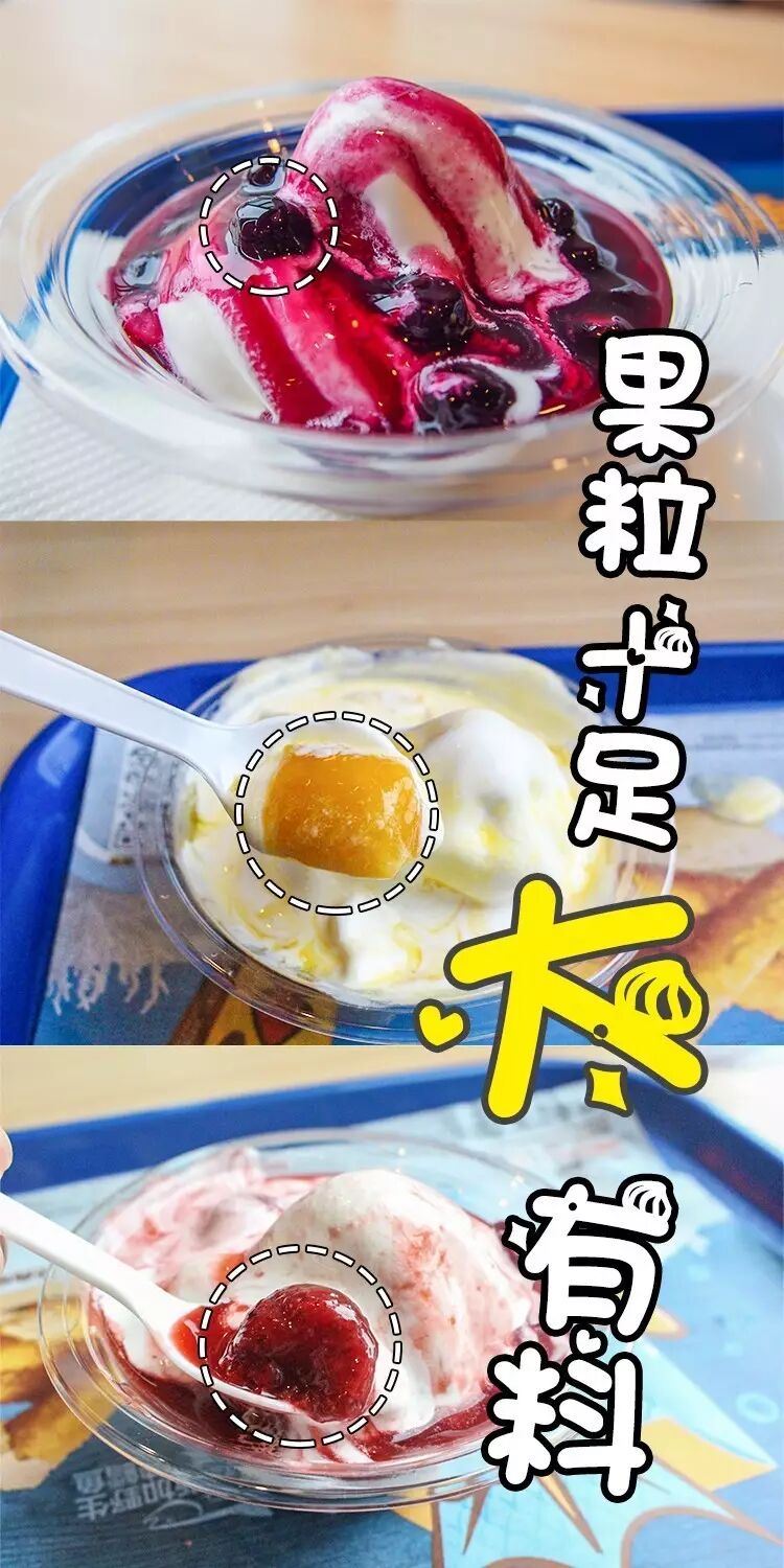 平时你吃的那些水果冰淇淋,上面的果粒简直要拿放大镜找,大大一口咬下去,小小的果粒简直要从牙缝里溜走。这么吃,怎么能过瘾?!