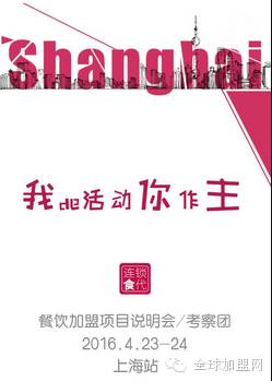 4月23日至24日,全球加盟网联合“连锁食代”,共同举办餐饮加盟项目考察团,将携冰雪皇后、棒约翰、汉堡王、小肥羊等餐饮行业大咖降临上海虹桥国际会议中心。