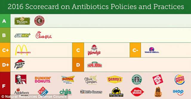 由地球之友、美国自然资源保护协会以及食品动物担忧信托机构、消费者联盟和食品安全中心发布的报告,对美国25家快餐店和“快速休闲”餐厅关于肉和家禽类抗生素使用政策作出评比。