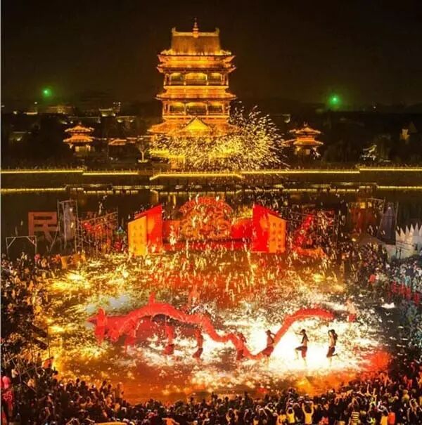 打钢花是中国汉族民间习俗、民间艺术中富有文化特色的非物质文化遗产,高达1500℃的铁水掺杂着特制的干花被拍打至高空,瞬间空中“流星”飞舞,场面恢弘壮观、气势磅礴,五一假期每晚将在台儿庄古城震撼登场。