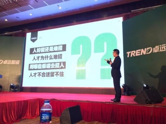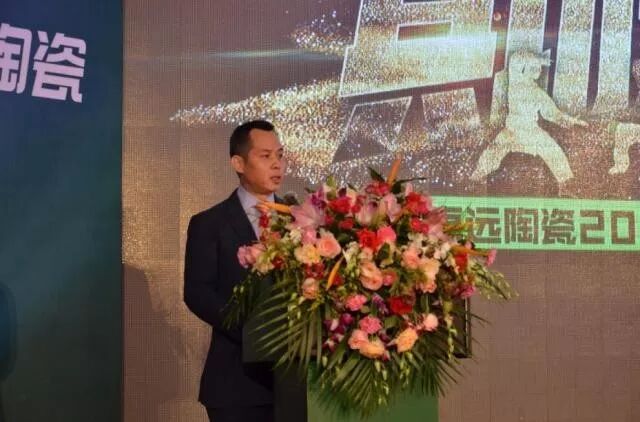 会议在宏源陶瓷企业销售总经理喻国庆先生的致辞中拉开帷幕,喻总首先对卓远陶瓷征战在市场一线的将士致以了衷心的感谢。喻总表示,2017年的陶瓷行业,相继受到环保高压与相关政策法规的影响,限产停产现象不胜枚举,陶瓷行业正在经历一场洗牌和变革,而这危急存亡的生死关头,卓远人精耕细作,凭借品牌发展、产品提升、营销创新、市场推广、精益管理,厂商携手戮力同心,逆势高速增长,业绩全线飘红,取得了骄人成绩,在激烈的市场竞争中仍旧傲然屹立,熠熠生辉。