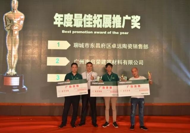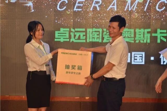 20日晚上,新片首映礼暨奥斯卡颁奖典礼拉开帷幕,一个个高挑美丽的模特手持卓远陶瓷新品缓缓走上T台,以十二生肖形式亮相的爱+、金刚釉系列新品着实引人注目,全场来宾欢呼鼓掌!卓远奥斯卡颁奖典礼引爆了本次年会的高潮,主办方为了感谢卓远陶瓷经销商的付出与贡献,对获得销售优异成绩的经销商进行了隆重的颁奖,全场设立了年度最佳营销创新奖、年度最佳明星店面奖、年度最佳新品推广奖、年度最佳拓展推广奖、年度最佳先锋大奖、忠诚合作奖等奖项。晚会更以丰厚的奖品充分调动了在场观众的参与热情,IPAD、豪华出国游、神秘礼品等悉数被抽走!最终,晚会在一片欢乐、和谐的气氛中落下帷幕!