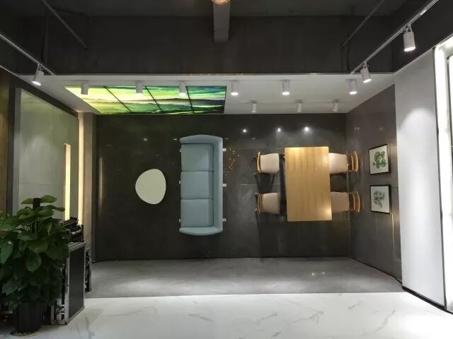 而卓远陶瓷总部营销中心全新500多平方米现代风尚馆正式开放,设计以国际时尚为方向,一切回归到产品的展现,打造以现代简约风为主,体现现代舒适、健康活力,充满朝气和希望的绿色人居风格的舒适空间。黑白灰色调层次搭配,大直板开放式选材区,最大限度地展示产品一石多面的纹理特色,带出强烈的流行前卫设计感。
