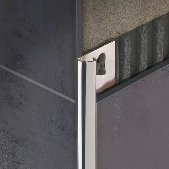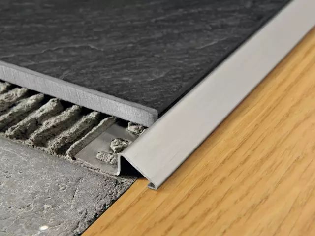 砖在阴角阳角收口时,通常采取45°角对拼的方式。这样不仅容易崩边、开裂,还存在一定的安全隐患。而圆润的金属收边条不仅增强了装饰效果,也一并消除了这些问题。