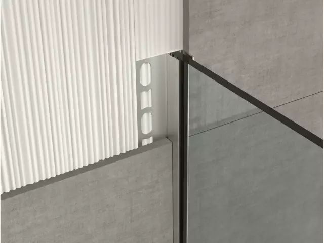 在卫生间墙地砖的铺贴上,我们通常采取“墙压地”的做法,因为缝隙小,美观的同时防水效果也好。而收边条不仅兼备这些优点,也让空间品质感瞬间得以提升。