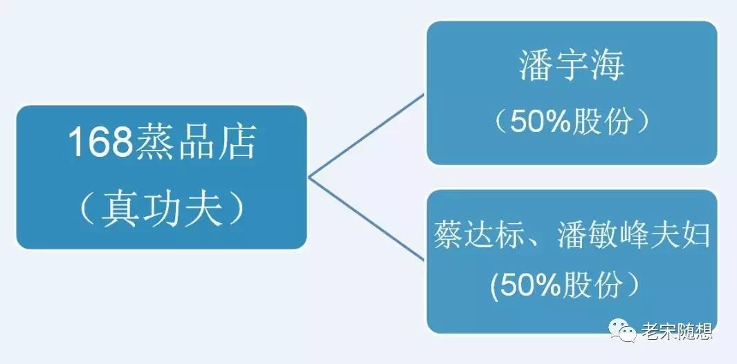 1994年,蔡达标投奔小舅子潘宇海,一块经营餐饮生意,当时的“168蒸品店”也开始走上了连锁扩张之路。潘宇海将50%的股份给予蔡达标夫妇,在经营上潘宇海主内,蔡达标主外。