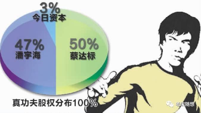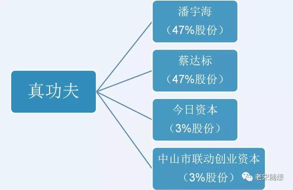 第二步,引入两家风险投资,今日资本和中山市联动创业资本约3亿的资金,各占3%的股份。之后,潘宇海和蔡达标各占47%股份。