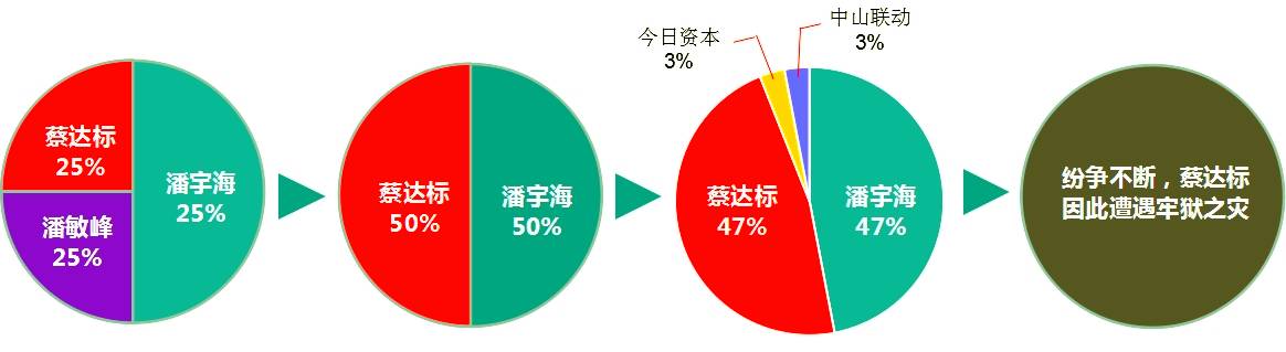 2008年,蔡达标五年一届的总裁任期已到,按照当初约定,理应由潘宇海出任总裁一职,但是蔡达标食言了,此后,潘宇海与蔡达标为争夺企业控制权,展开了一系列的活动,彼此斗的你死我活,蔡达标制定了一系列的脱壳计划,企图架空潘宇海。