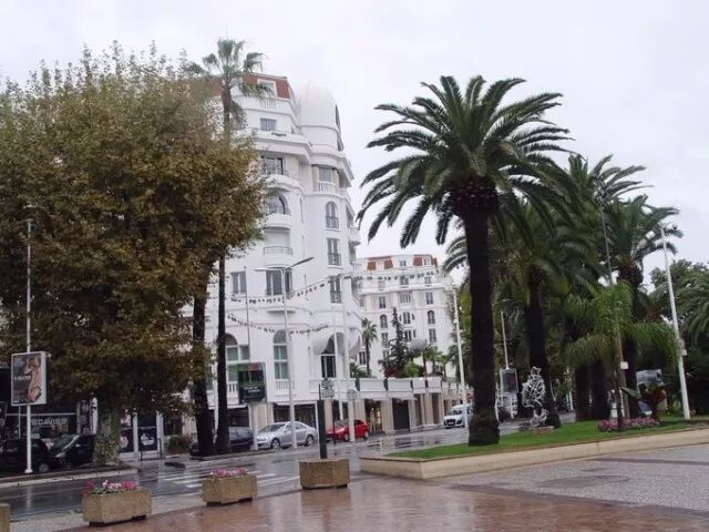 戛纳最引人入胜的是美丽的海滨大道(Boulevard ed la Croisette),宽阔整洁,一边是沙滩海湾,一边是雅致的酒店,酒店的建筑有上世纪的古建筑群,也有非常现代化的楼宇。在街道中间的绿化带,全年皆有繁花盛开,阳光下生机勃勃的棕榈树,给小城更增添了魅惑的元素。