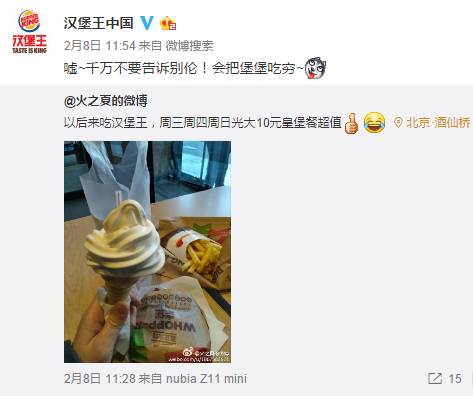 (PS:参加门店:全国所有售卖该产品的汉堡王门店,除交通枢纽,景区及封闭商圈门店。兑换有效期:3月1日至3月7日)