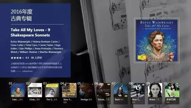之前的好奇是rufus如何将十四行诗构成传统意义上完美的十六乐句,他的编曲方式不出乎意料但是出奇沉稳,流行乐元素的大量运用提高了普通听众的接受度,但很难说是不是一件好事——robertooo