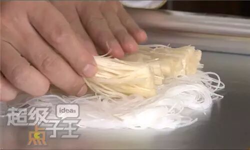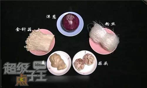然后把粉丝用清水浸泡备用,1斤花甲螺搭配泡发后2两的粉丝、2两的金针菇就合适了。↓