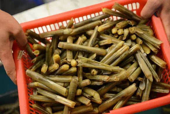 指甲螺属于软体动物,是一种体形细长的贝类,生活在海洋之中,为常见的海鲜食材。因神似人的指甲,故名为指甲螺。其贝壳呈灰色条纹状,边纹呈黑色,螺肉很好吃,并且价格也很便宜。