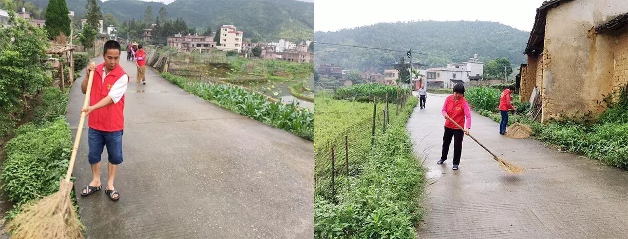 平时村落村道的卫生就以义务酬劳这个方式,分片段,各个包片干部下去,组成清洁队伍。有义工,有酬劳学生,几十万的资金,政府拨一点,外出乡贤出一点,大家村民自筹一点。