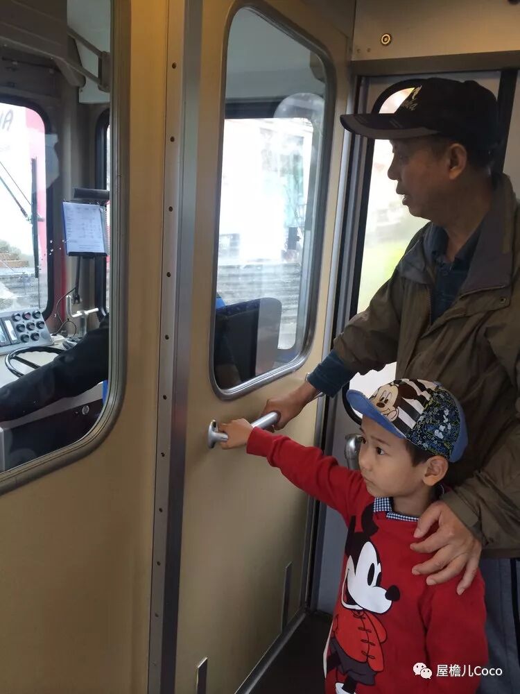 快到站的时候,姥爷满足了TT的愿望,近距离看看司机,这可不是一件容易的事情,高山小火车的倾斜角度很大,从座位上平平稳稳地站起来并不太容易,就别说往前走了,好不容易走到头也得紧紧地拉着扶手~