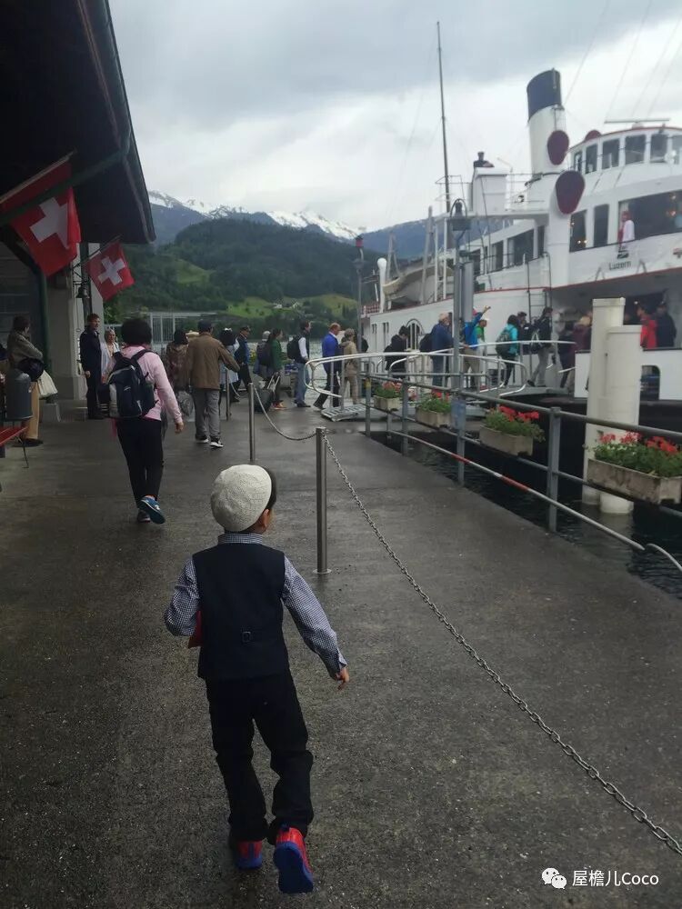 吃饱饭后,我们就在码头登上了一艘游船,当时的卢塞恩湖是这样滴~