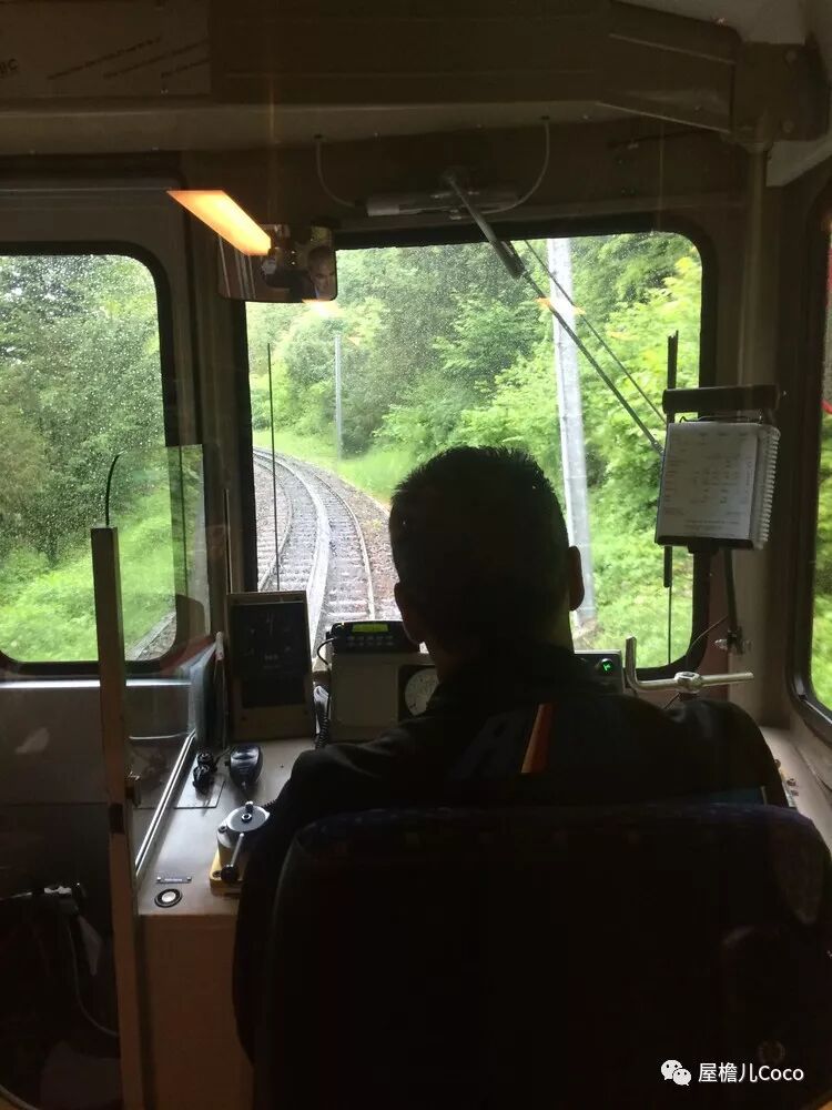 想象中:开这种小火车的人应该是世界上最幸福的人了,其实不然,倾斜度达到30度的小火车总是慢吞吞地向上爬,郁郁葱葱的森林里露出一条弯弯曲曲的小路,想想每天都是重复的路,重复的工作,有时也会遇上嘈杂的人群装满车厢,好像也并没有想象中的那么美好,反倒是今天,空空的车厢,阴雨绵绵的小路,让司机有了兴致,一路面带微笑地工作着。