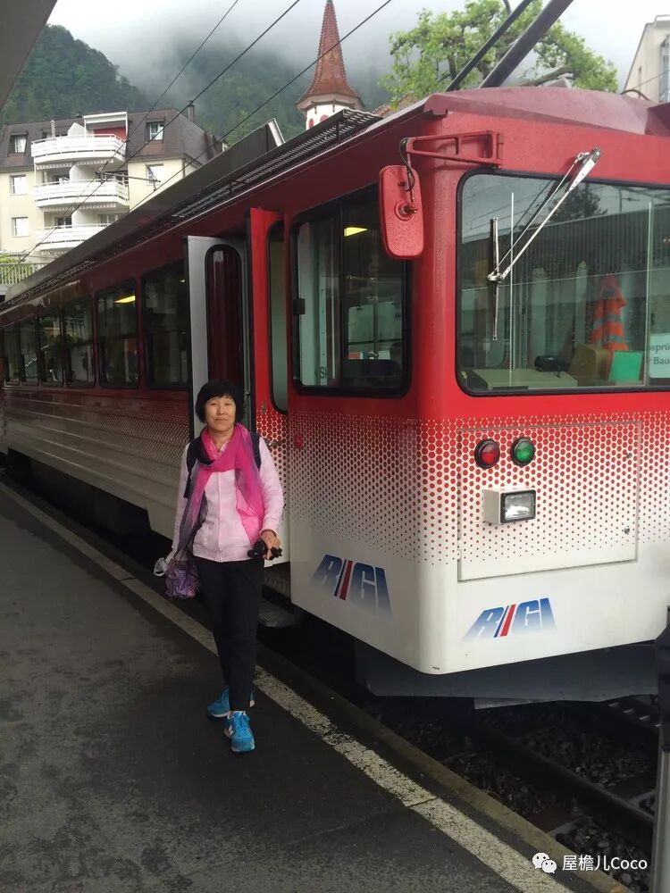 这就是瑞士最最著名的小火车啦-Rigi山的红色小火车,无数次地在准备旅行计划时看到她的身影,她那耀眼的红色车身与青绿的Rigi山,宝石绿的卢塞恩湖,碧蓝的天空,雪白的山头共同组成了瑞士享誉世界的风景。