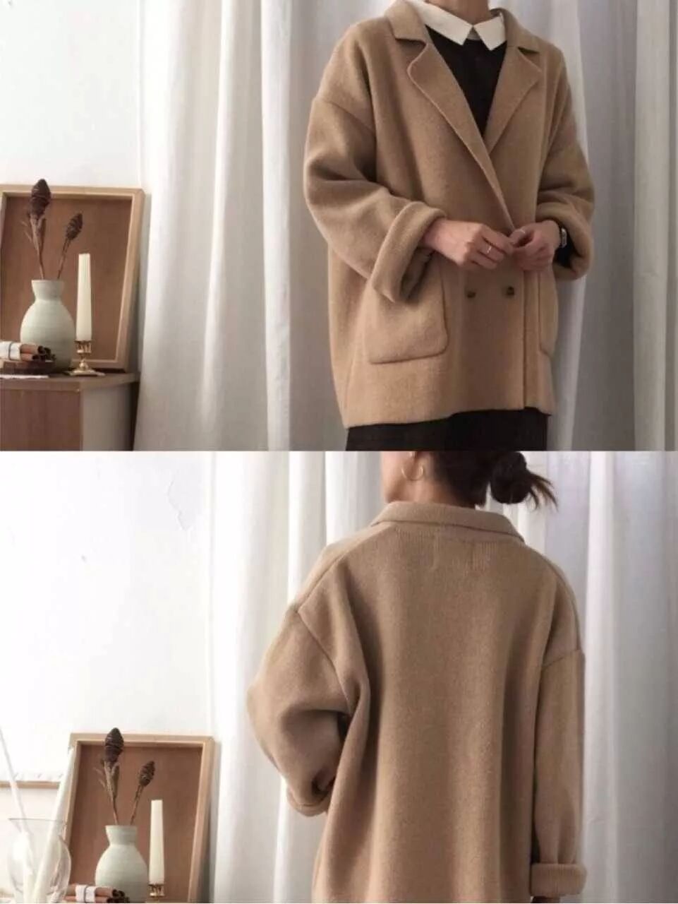觉得长款太难驾驭的姑娘,也可以选择短款双面呢外套。内搭碎花裙甜美淑女,比较适合娇小的仙女。