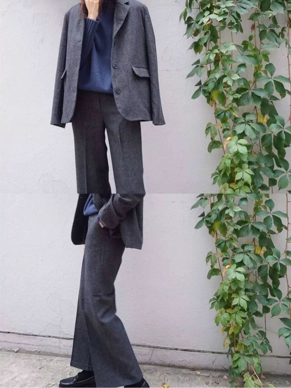 有气场的仙女可以尝试整组的西装西裤搭配,特别推荐格纹的款式,秋冬季非常流行。西裤还可以单独搭配大衣。