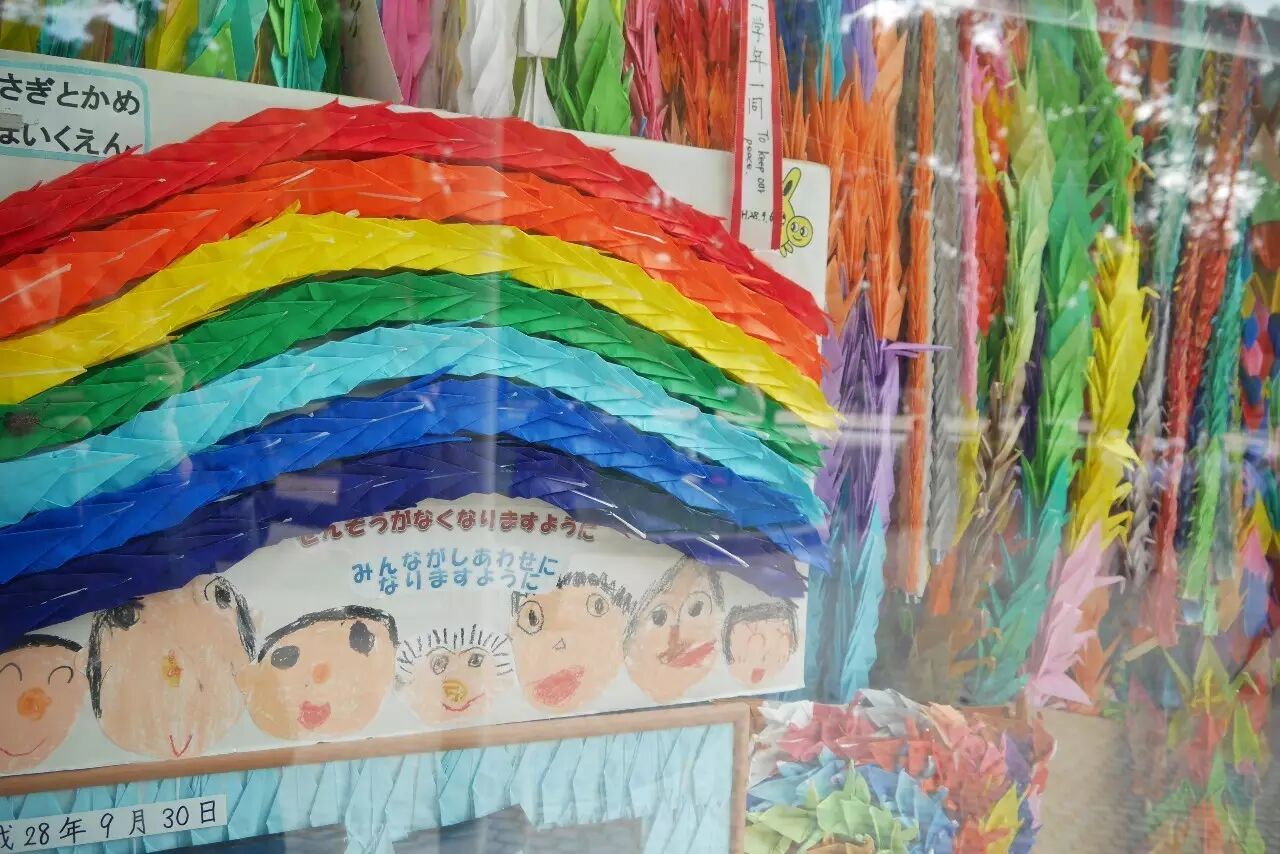 著名的千纸鹤祈愿故事,1945年8月6日,两岁的桢子和哥哥一起经历了广岛原爆,九年后的冬天当年核辐射的影响发作,擅长跑步的桢子只能在病床上等待死亡。听说千纸鹤可以实现愿望,桢子开始强忍病痛折纸鹤,身体却越来越衰弱,最终在广岛原爆后十年,12岁的桢子去世。一个小女孩的病痛和愿望,让千纸鹤成为广岛的和平象征,前来参观的人们也往往会送上亲手折好的千纸鹤,祈求世界和平。